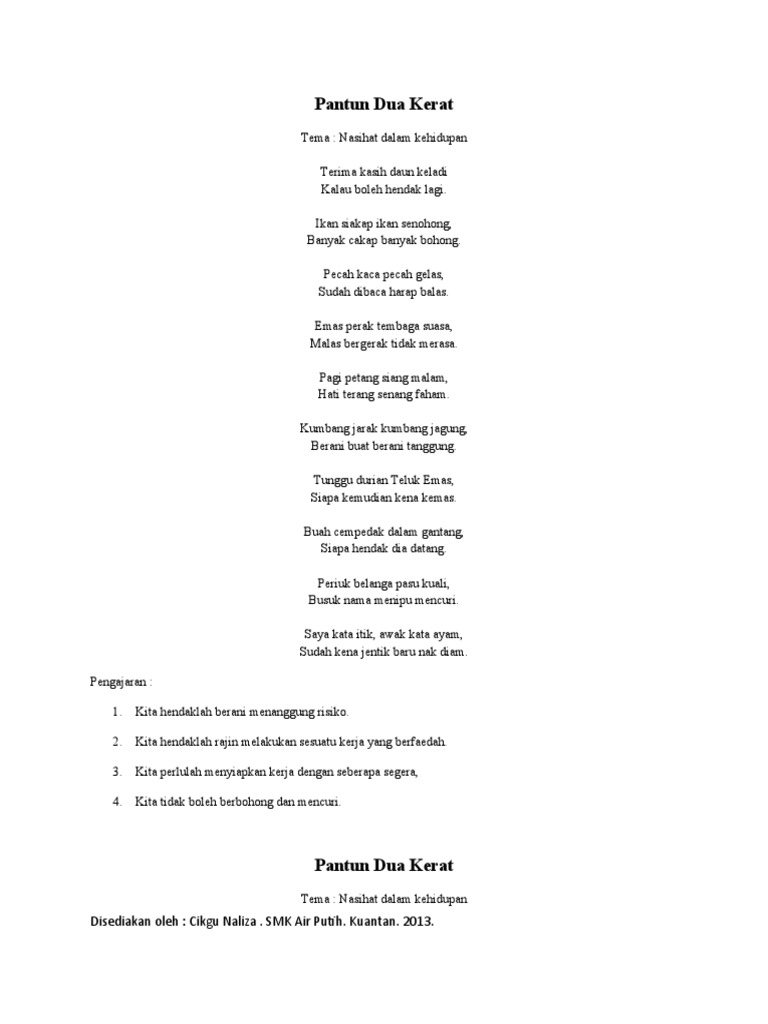 Pantun Dua Kerat Nasihat Tingkatan 1 Nota 2